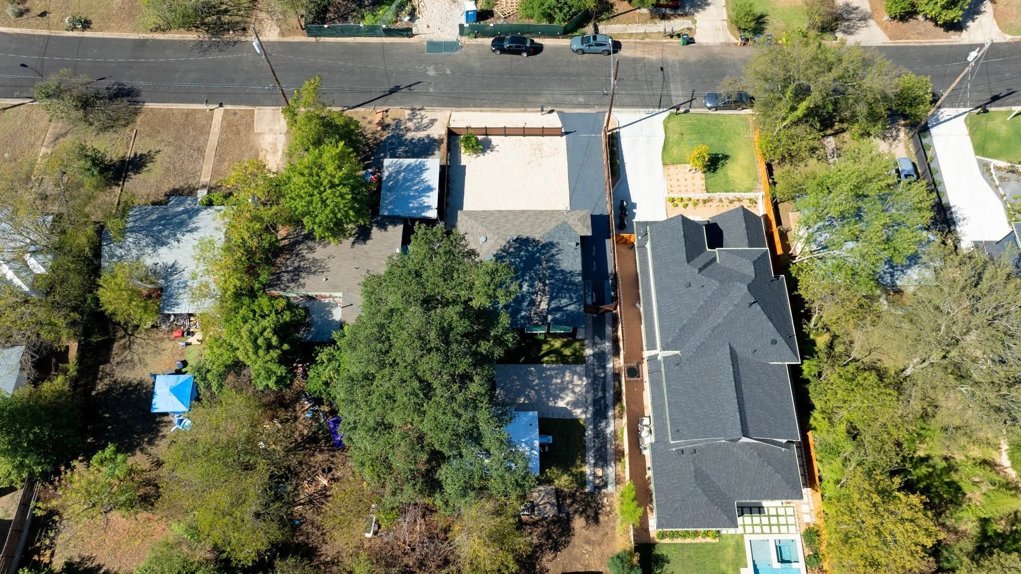 Usually, ADUs are known as backyard homes or cottages or secondary dwelling units. Here, the ADU had to be constructed in the front of the site because of existing site challenges, including heritage trees, environmental conditions, and City of Austin regulations.